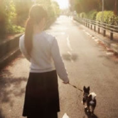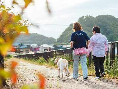 外出のきっかけとして、元保護犬(Rescue dog)と一緒にお散歩。